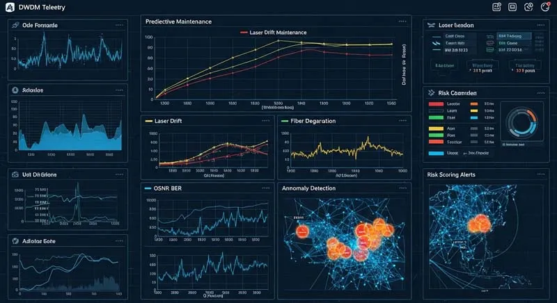 Predictive maintenance is one of the strongest business cases for an AI-driven DWDM Network. Many optical failures do not appear suddenly. Laser wavelength drift, power drift, connector loss growth, and fiber aging usually develop over time. Therefore, prediction models can detect precursors and issue early warnings.