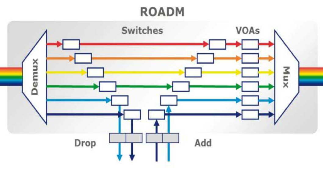 - Variable optic attenuators (VOAs) : configures the attenuation of optical power in each wavelength