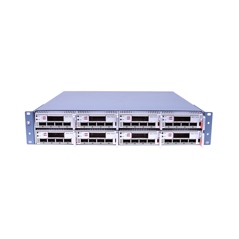 Compact 1U chassis (3.2T) ideal for space-constrained metro node deployments requiring high-density service aggregation with forward/rear air cooling.