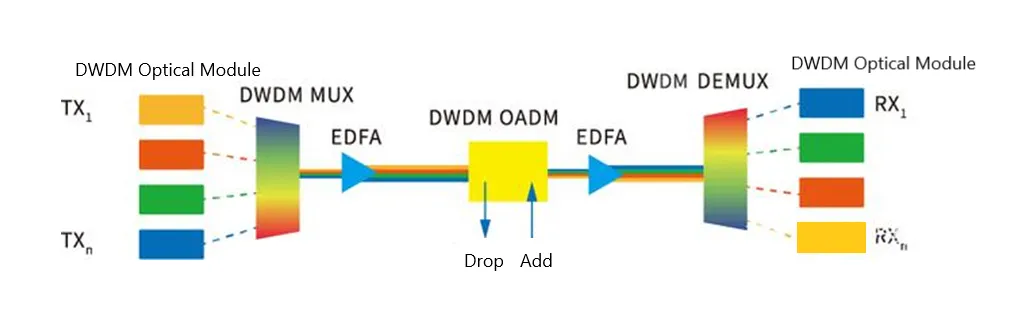 DWDM systems typically have the following optical components: DWDM optical modules, DWDM MUX/DEMUX, DWDM OADM and optical amplifiers.