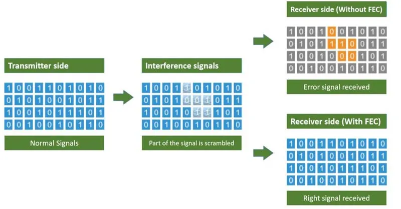 FEC is short for Forward Error Correction. Forward Error Correction is a type of error control, which refers to a technique where a signal is pre-processed according to a certain algorithm for coding before being sent into the transmission channel, adding redundant codes with the characteristics of the signal itself, and decoding the received signal at the receiving end according to the corresponding algorithm, so as to find out the error codes generated during transmission and correct them. To give a simple example, someone writes an article with many typos in it, then a very knowledgeable verifier who can read it, then corrects the typos and then shows it to a layman. Before the correction, the layman cannot read it, and only after the verifier has corrected the typos can he read it.