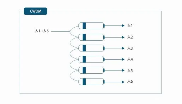 CWDM: wavelength interval ≥20nm, usually using eight bands of 1470~1610nm with 20nm interval, (HTF: 1270nm~1610nm)