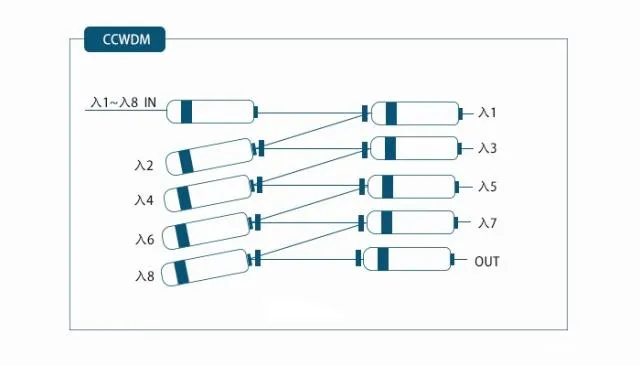 The CCWDM principle is to use the input lens to focus the light signal of wavelength λ1, λ2…λn on the input fiber to the first filter; the light signal of wavelength λ1 passes through the first filter and is coupled to the first output fiber by the first output lens to separate the light signal of wavelength λ1; the rest of the light signal is reflected by the first slide to the next slide for The remaining optical signals are reflected by the first slide to the next slide for optical signal separation; and so on until all signals are separated. The coupling between the wavelength channels is achieved in the form of a straight line that follows a “zigzag” path.